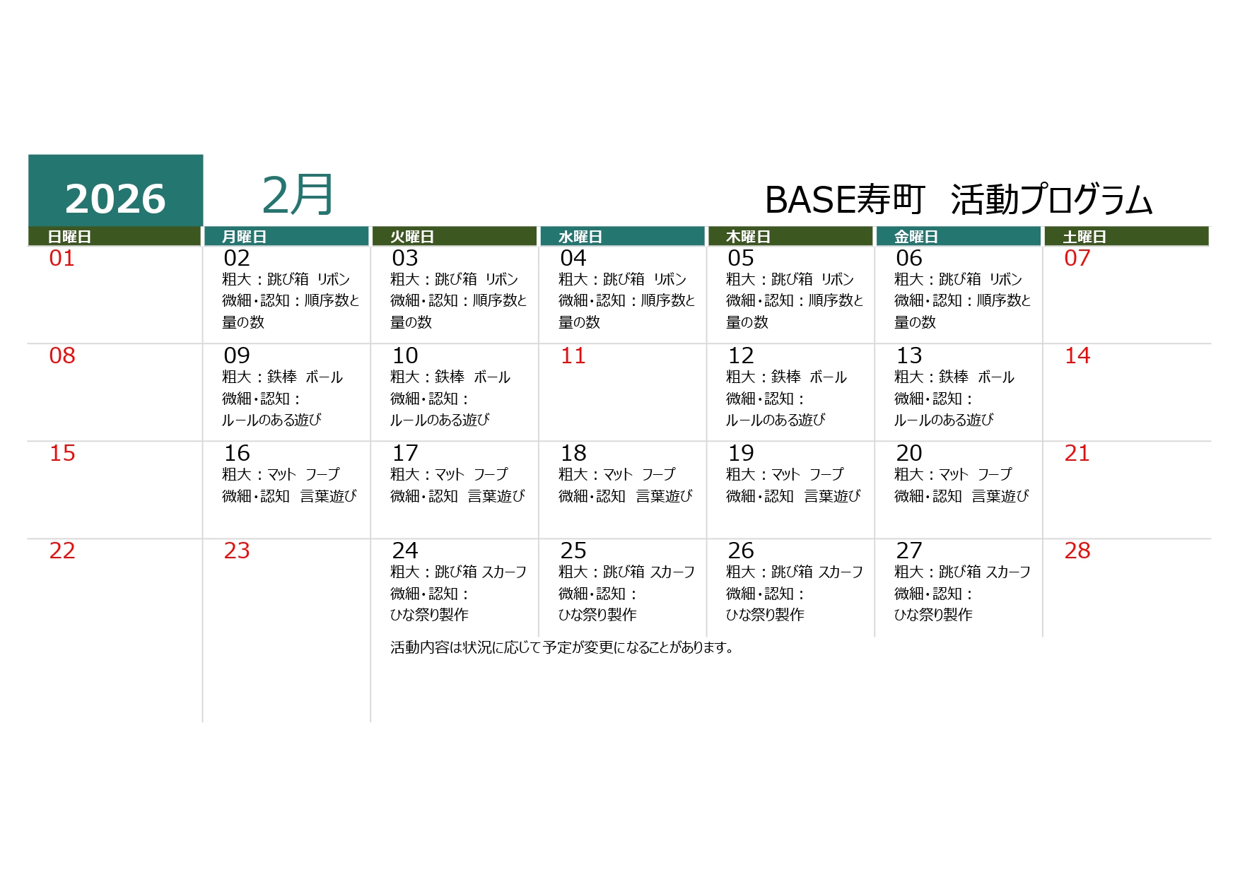 10:25/13:55/15:55【療育2】  微細:認知・ルールのある遊び・読み聞かせ
